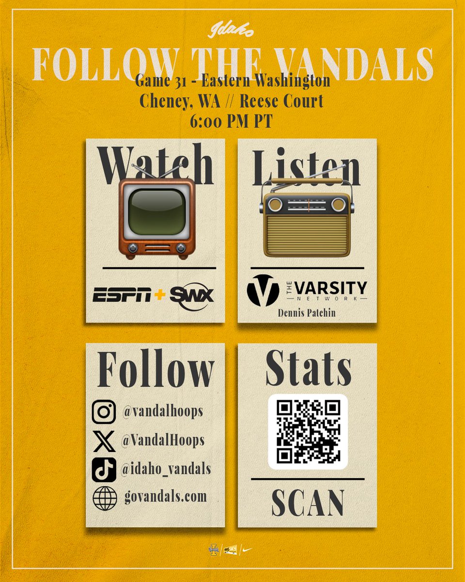 Idaho Basketball@VandalHoopsReady to spend an evening with the Eagles. 📍- Cheney, WA �...2 months ago•