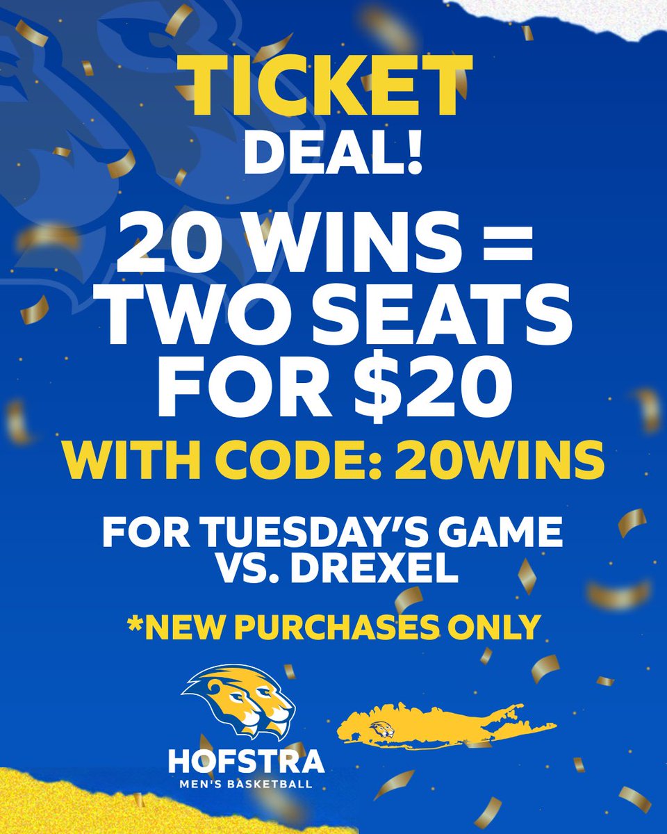 Hofstra Men's Basketball@HofstraMBB20 WINS ๐ฐ TWO SEATS FOR $20 ๐๐๏ธ Use the code 20WINS to g...2 months agoโข