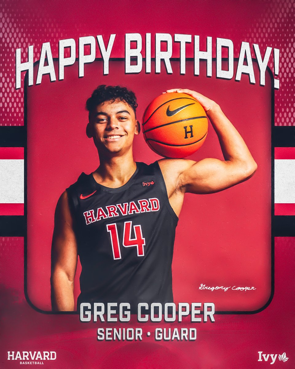 Harvard Men’s Basketball@HarvardMBB🎉 Happy Birthday to senior guard Greg Cooper! Hope you hav...2 months ago•