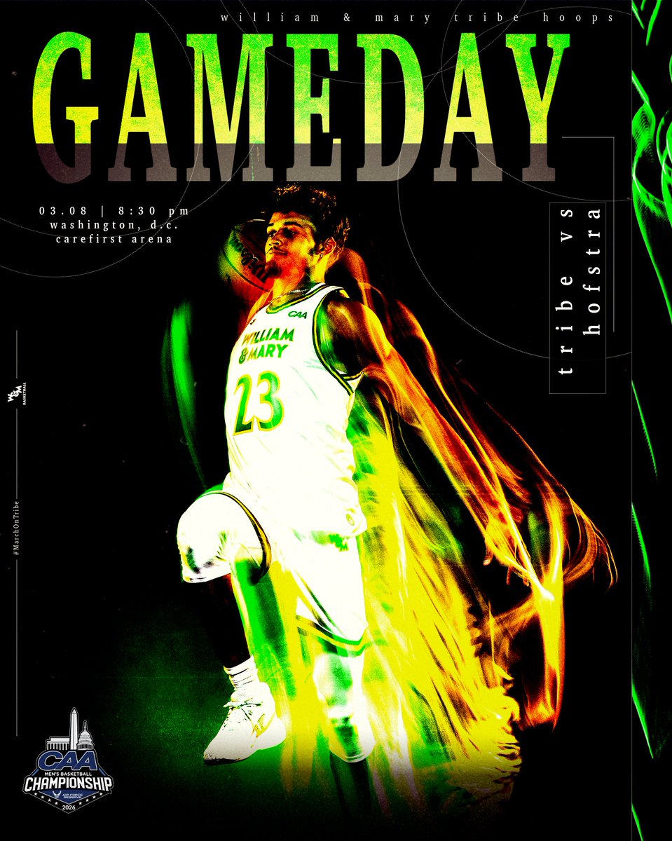 William & Mary Tribe Men's Basketball@WMTribeMBB𝙂𝙖𝙢𝙚 𝘿𝙖𝙮 ➡️ CAA Quarterfinals 🆚 Hofstra 📍 Washin...2 months ago•