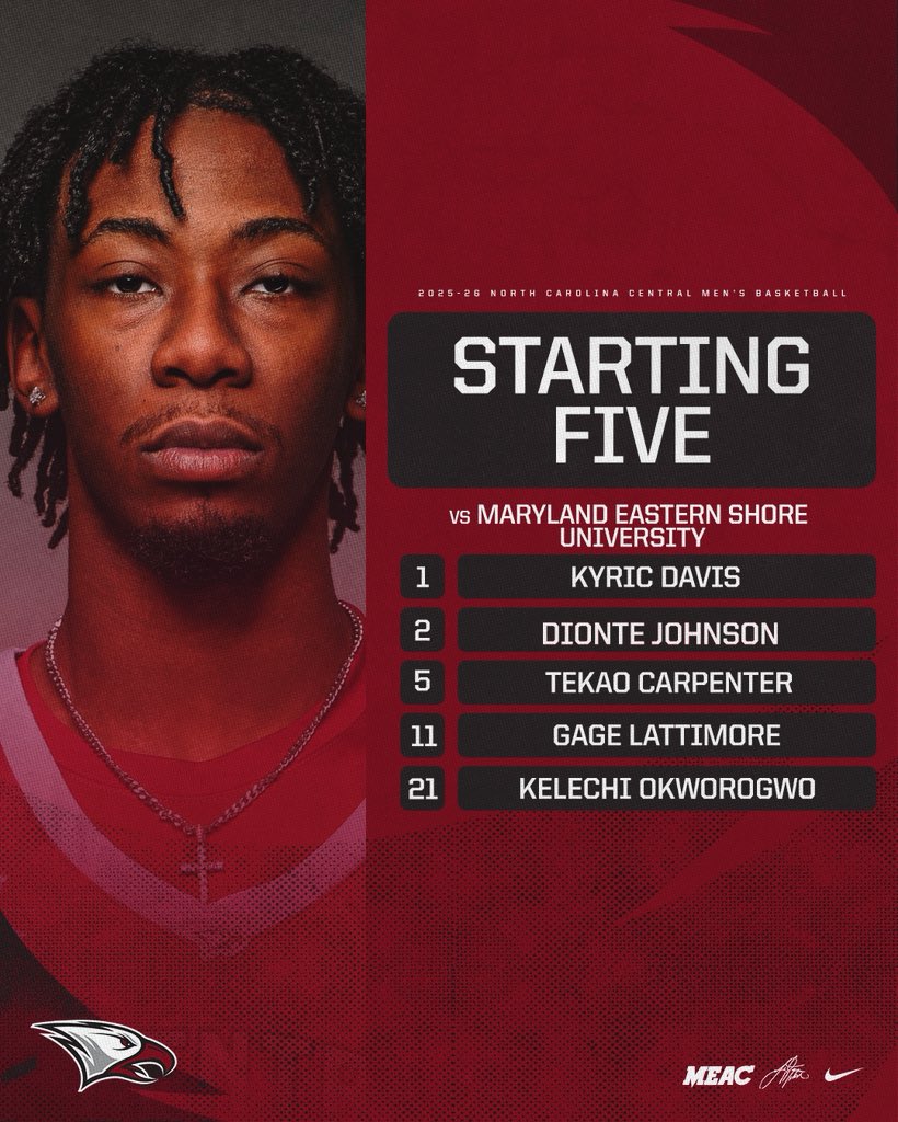 NCCU Men's Basketball@NCCU_MBBYour Eagle starting 5! π¦ π #EarnedNotGiven #WeAreNCCU2 months agoβ’