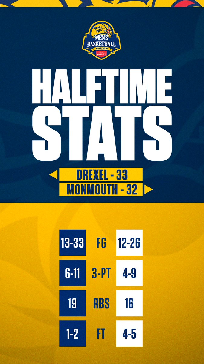 Drexel Men's Basketball@DrexelMBBDrexel holds still holding a 1⃣ point lead at the half. #Fe...2 months ago•