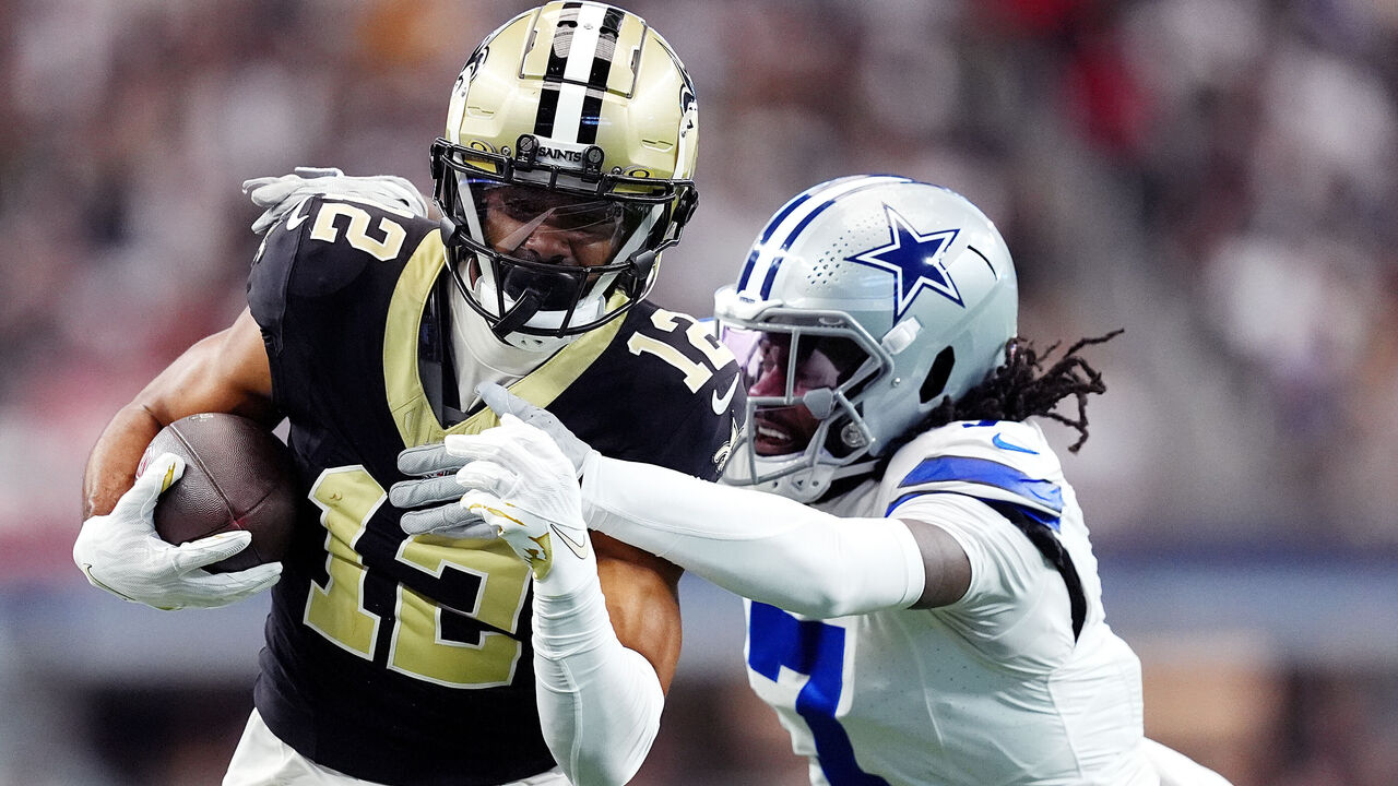 Kubiak repeatedly dialed Kamara's number, electing to gash Dallas with a heavy dose of outside zone calls. The Cowboys failed time and time again to set the edge, resulting in chunk gains and exhausted defenders as Kamara juked and tiptoed his way to the end zone. Quarterback Derek Carr also diced through Dallas' secondary, often airing it out to receivers Chris Olave and Rashid Shaheed - the duo combined for eight catches and 177 receiving yards.