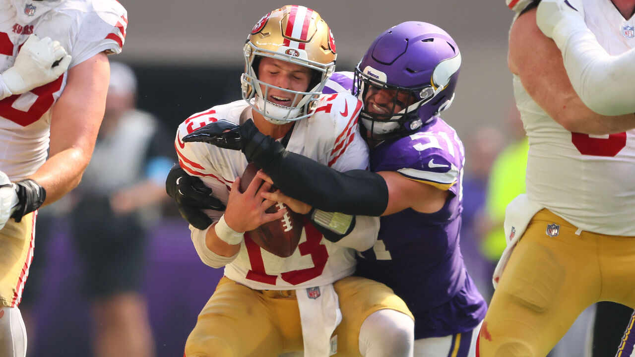 Coming off a short week, the 49ers were sloppy and lacked vigor. Vikings defensive coordinator Brian Flores harassed quarterback Brock Purdy with pressure calls from across the formation. Even when Flores didn't send the house, he had the typically sound Purdy in a tailspin.